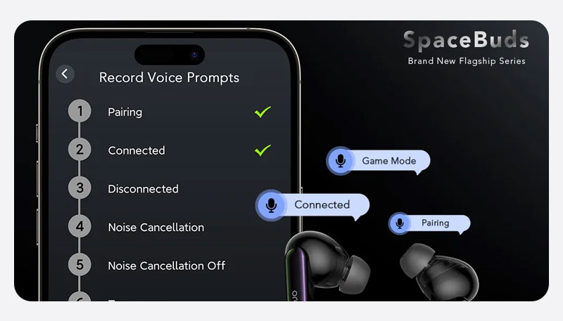 توجيهات صوتية مخصصة ترشدك خلال رحلتك السمعية. اضبط التفاعلات وفقًا لذوقك واجعل SpaceBuds خاصة بك.