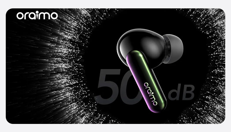 اختبر الهدوء التام كما في الفضاء مع تكنولوجيا إلغاء الضوضاء الهجينة المتقدمة من oraimo التي تقضي على التشويش بسهولة وتوفر تقليل ضوضاء يصل إلى 50dB. استمتع بموسيقاك المفضلة وركز فقط على الصوت الذي يهم.